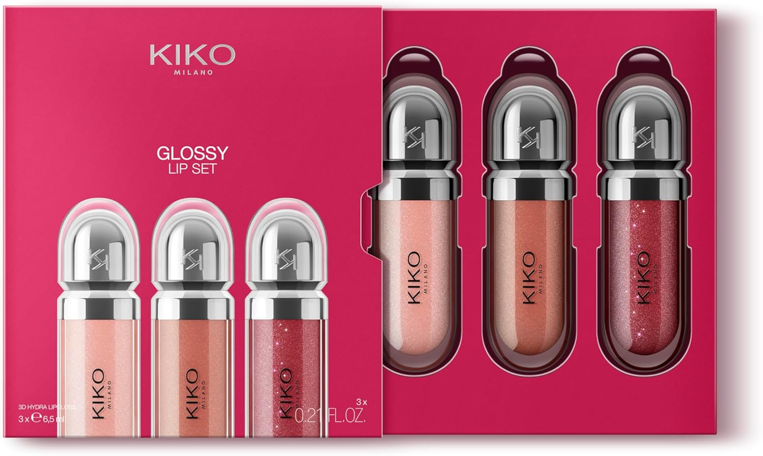 KIKO Milano Glossy Lip Set 03, Lip Kit: 3 Moisturising Lip Glosses With A Volumising 3D Effect